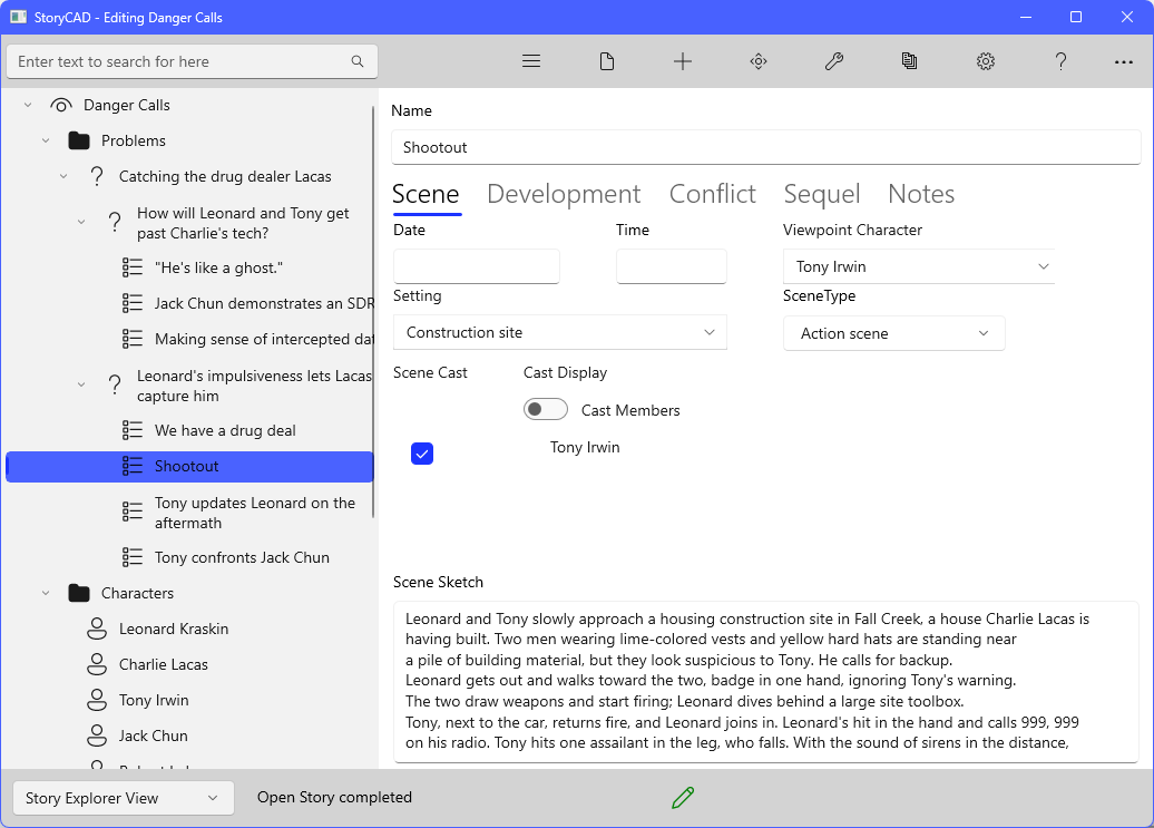 The Navigation Pane allows you to view, organize, and manage the parts of your story outline in a hierarchical structure. It’s similar to the Windows File Explorer, but instead of files and folders, each node in the tree is a Story Elements Your outline is composed of five Story Element types: