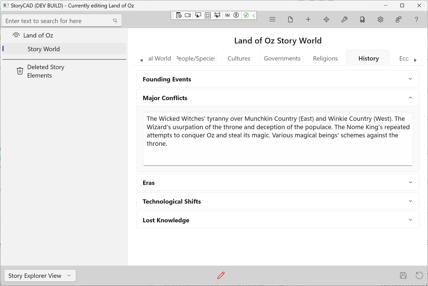 The History tab captures the past events that shaped your world into its current state. Focus on history that still affects your story’s present.
